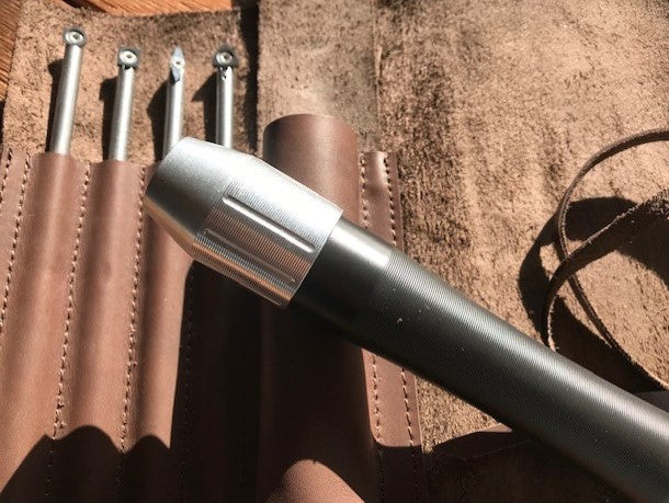 The BlackLine MINI 5-Piece Carbide Chisel Set is a premium collection designed for precision and durability in woodturning projects. This set includes a Molybdenum (Moly) handle, four interchangeable shafts, and carbide cutters, all neatly organized in a leather tool roll for convenience and protection.
