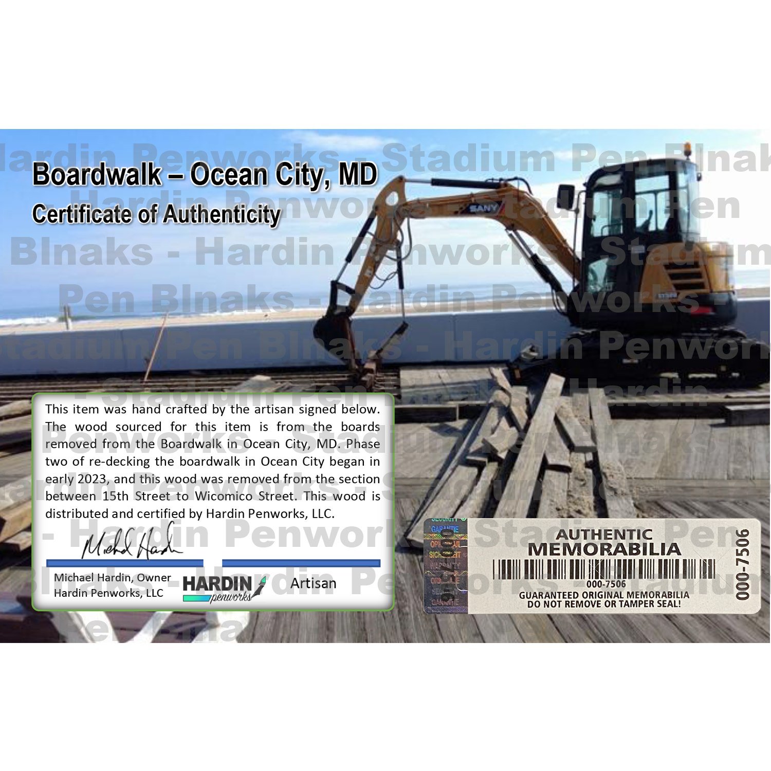 Blanks are made from the original deck planks of the Ocean City, MD Boardwalk.