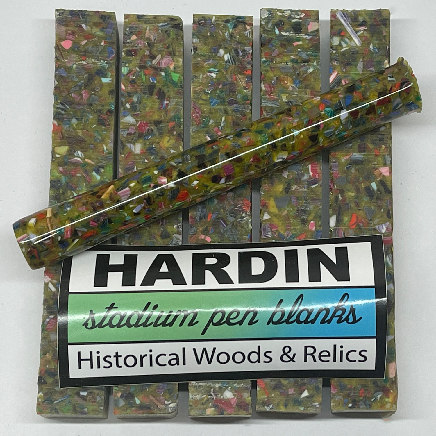 JB Royal CITRINE yellow resin blanks with suspended shredded resin cut-offs from the over-pour of other Alumilite and JB Royal resin blocks. The suspended material is a wild variety of mixes to form a kaleidoscope of colors.