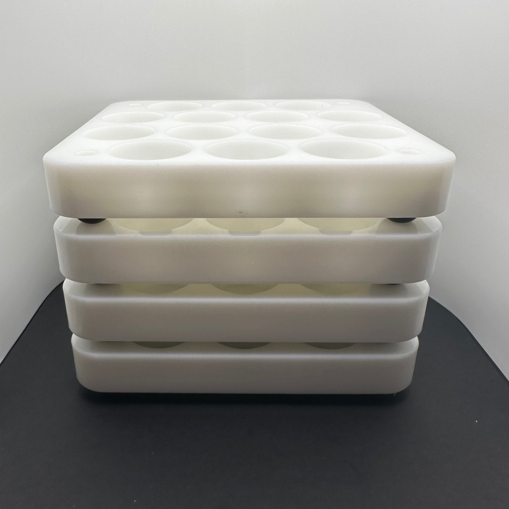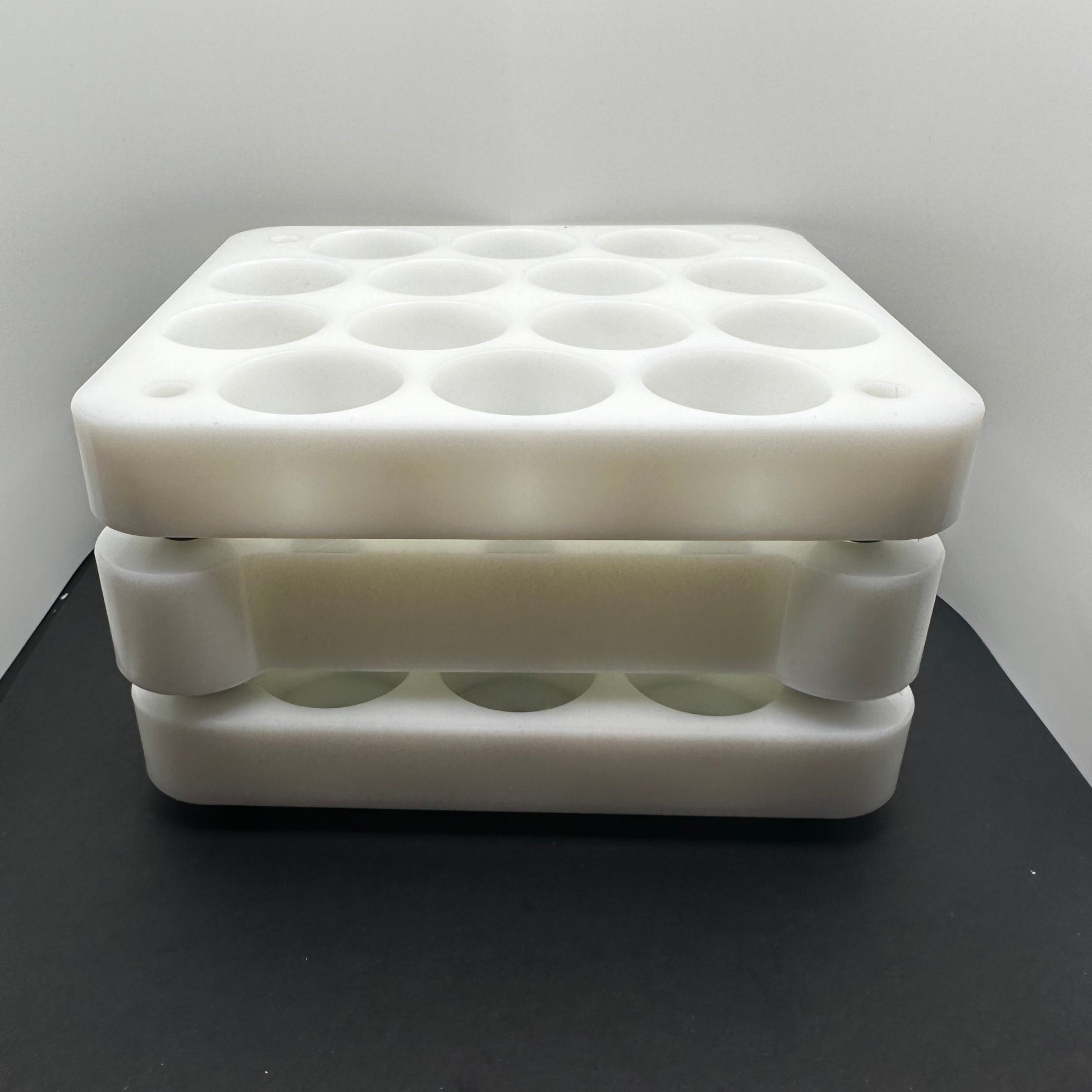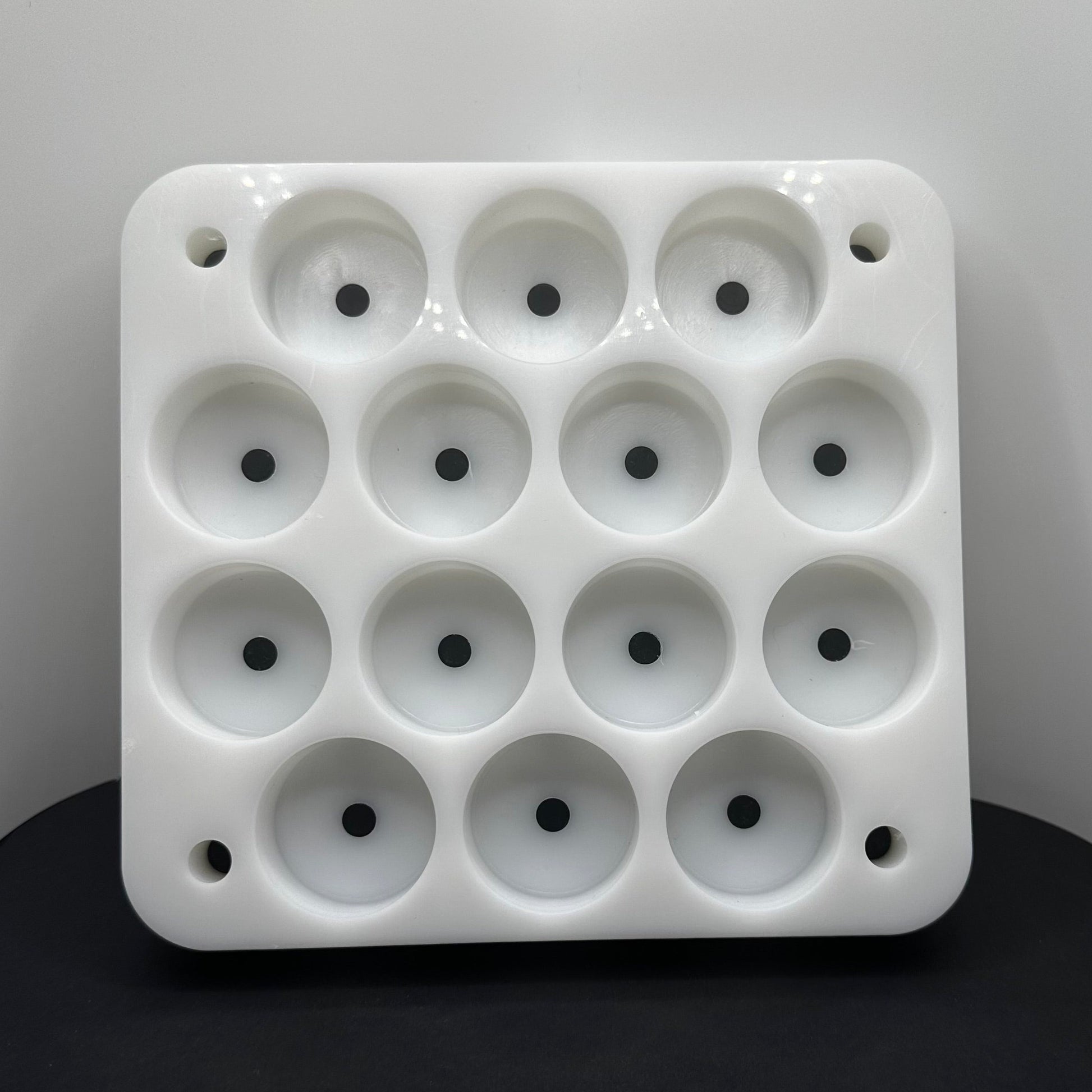 A release agent must be used due to the rigidity of the molds. Maneater Wax Mold Release is highly recommended. Just brush the release agent into the chambers, ensuring complete coverage. Allow to dry before pouring your resin. Also apply a release agent on the rubber plugs to keep them free of any resin buildup caused by potential spillage.