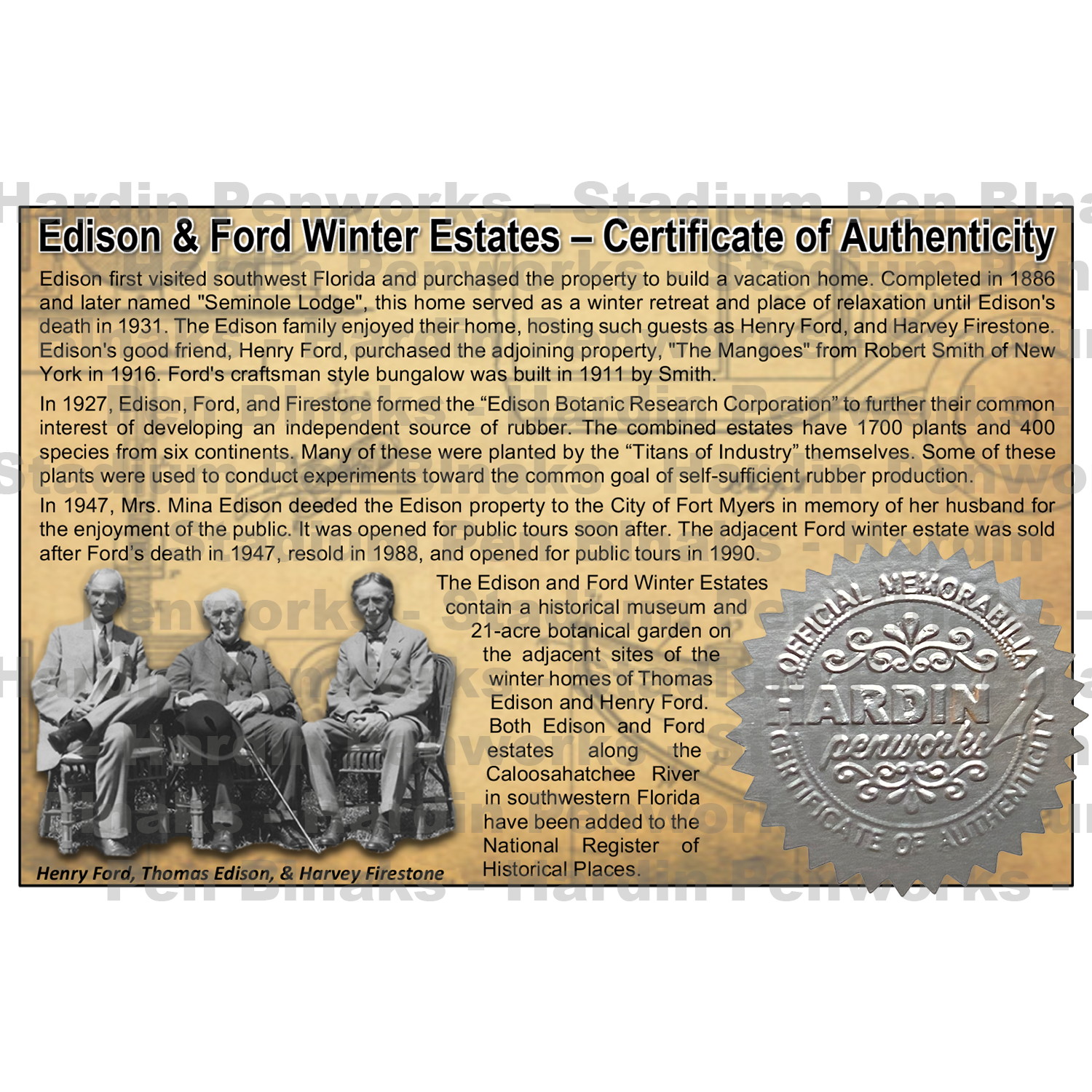 The Edison and Ford Winter Estates contain a historical museum and 21-acre botanical garden on the adjacent sites of the winter homes of Thomas Edison and Henry Ford. Both Edison and Ford estates along the Caloosahatchee River in southwestern Florida have been added to the National Register of Historical Places.