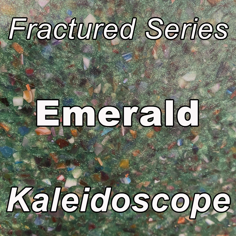 JB Royal Alumilite EMERALD CRYSTAL green resin blanks with suspended shredded resin cut-offs from the over-pour of other Alumilite and JB Royal resin blocks. The suspended material is a wild variety of mixes to form a kaleidoscope of colors.
