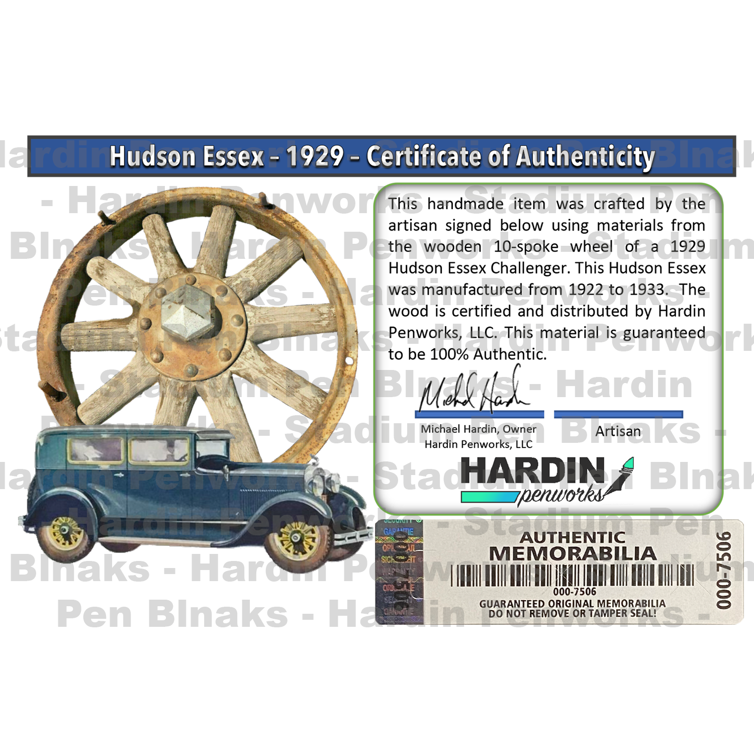 Blanks are from wood spokes salvaged from an original wood spoke wheels of a 1929 Hudson Essex Challenger Phaeton.