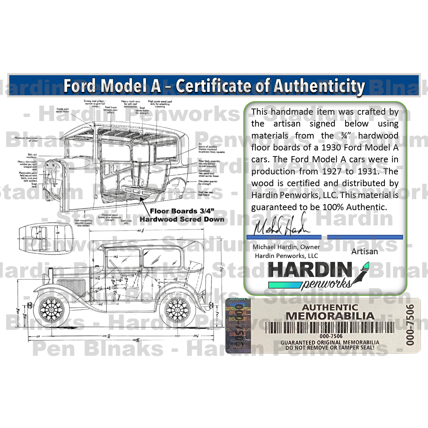 Blanks are salvaged from an original wood floor boards of a 1930 Ford Model A car.