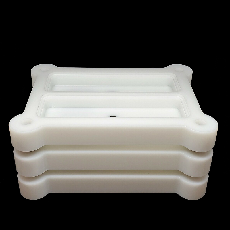 A release agent must be used due to the rigidity of the molds. Maneater Wax or Silicone Mold Release is highly recommended. Just brush the release agent into the chambers, ensuring complete coverage. Allow to dry before pouring your resin. Also apply a release agent on the rubber plugs to keep them free of any resin buildup caused by potential spillage.