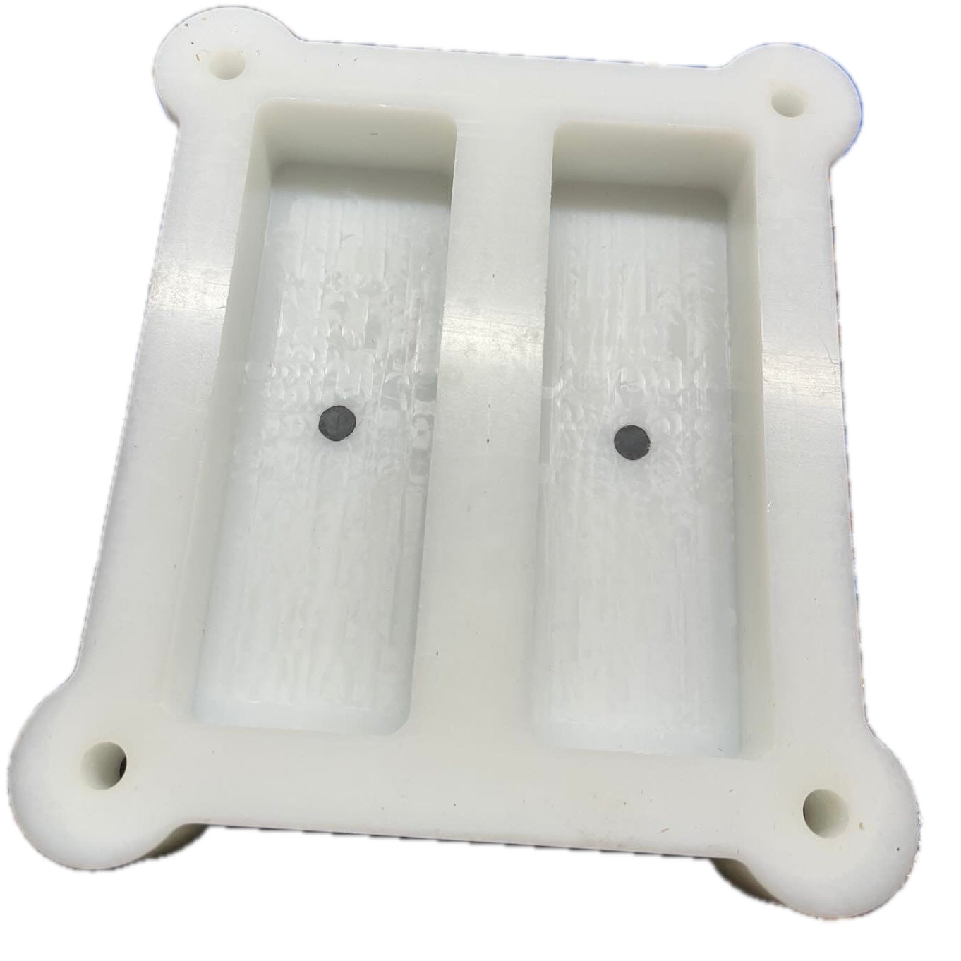 A release agent must be used due to the rigidity of the molds. Maneater Wax or Silicone Mold Release is highly recommended. Just brush the release agent into the chambers, ensuring complete coverage. Allow to dry before pouring your resin. Also apply a release agent on the rubber plugs to keep them free of any resin buildup caused by potential spillage.