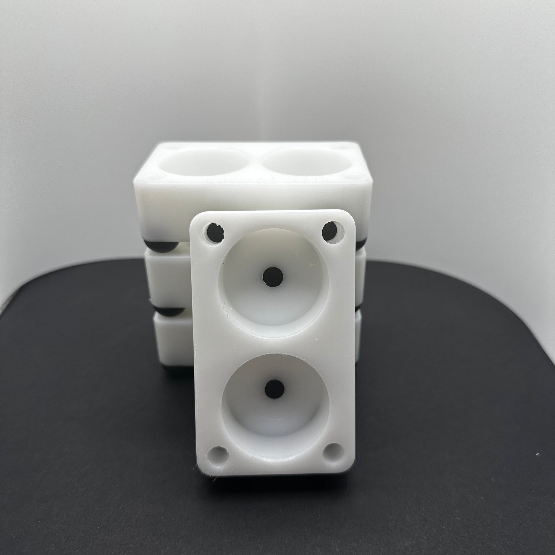 A release agent must be used due to the rigidity of the molds. Maneater Wax Mold Release is highly recommended. Just brush the release agent into the chambers, ensuring complete coverage. Allow to dry before pouring your resin. Also apply a release agent on the rubber plugs to keep them free of any resin buildup caused by potential spillage.