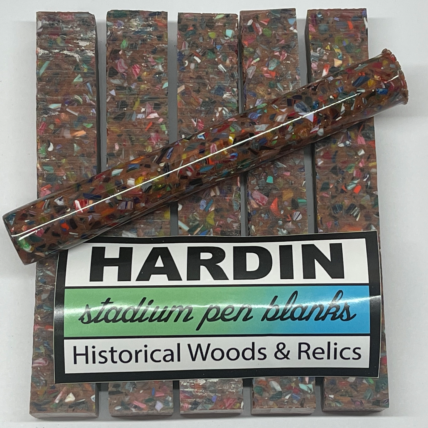 JB Royal GOLD DUST CRYSTAL resin blanks with suspended shredded resin cut-offs from the over-pour of other Alumilite resin blocks. The suspended material is a wild variety of mixes to form a kaleidoscope of colors.