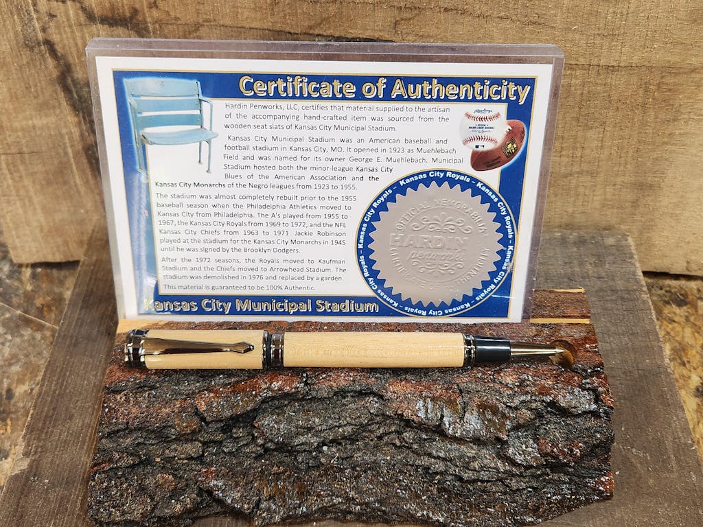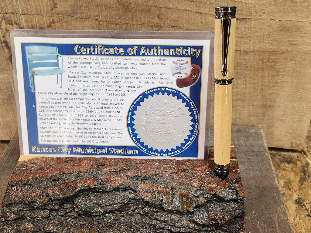Blanks are original wooden seat slats from Kansas City Municipal Stadium.
