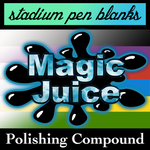 Magic Juice (MJ) is best used as a polishing compound for solid resin materials and plastics. MJ may also be used to polish items with a CA (Cyanoacrylate), CC (Craft Coat), or other similar product finish. For best results of hybrid and worthless wood blanks, a sealing finish of CA, CC, or similar is needed before polishing with MJ.