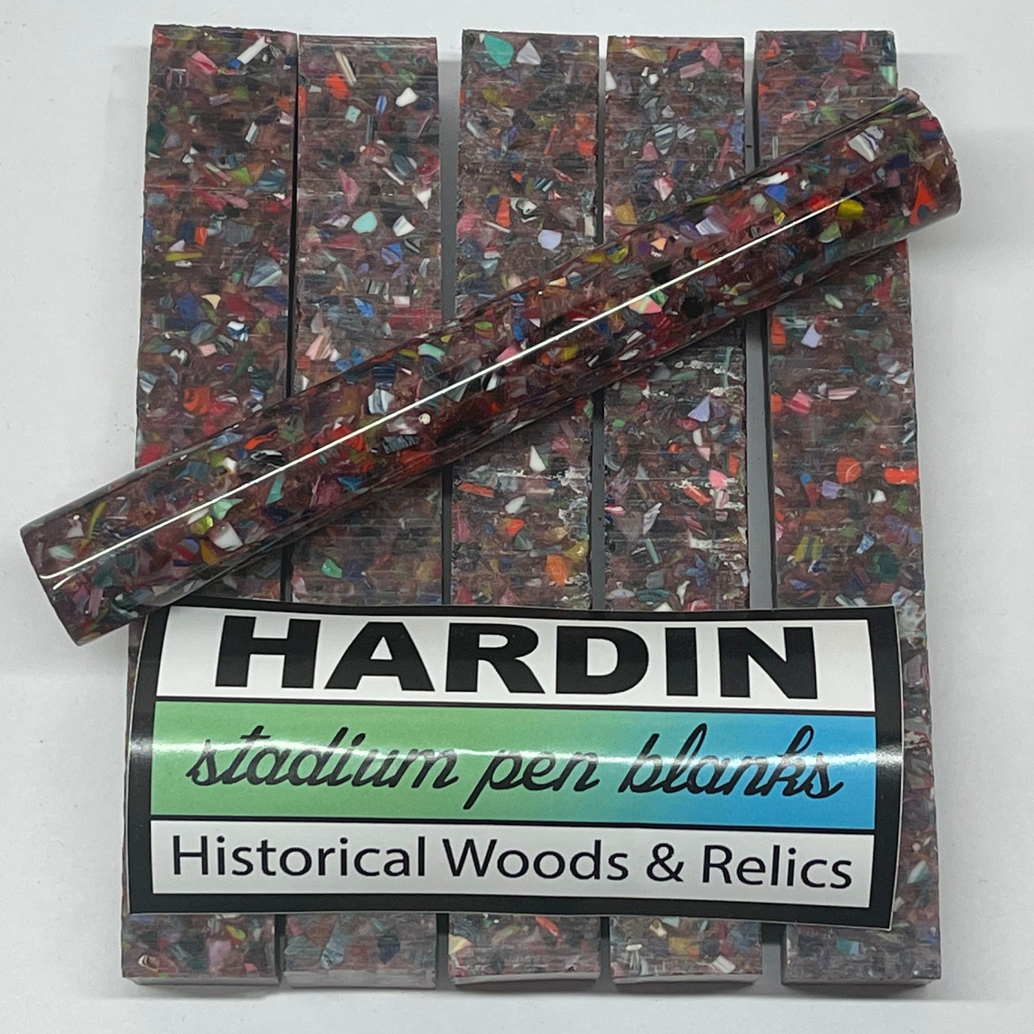 JB Royal ROSE GOLD resin blanks with suspended shredded resin cut-offs from the over-pour of other Alumilite and JB Royal resin blocks. The suspended material is a wild variety of mixes to form a kaleidoscope of colors.
