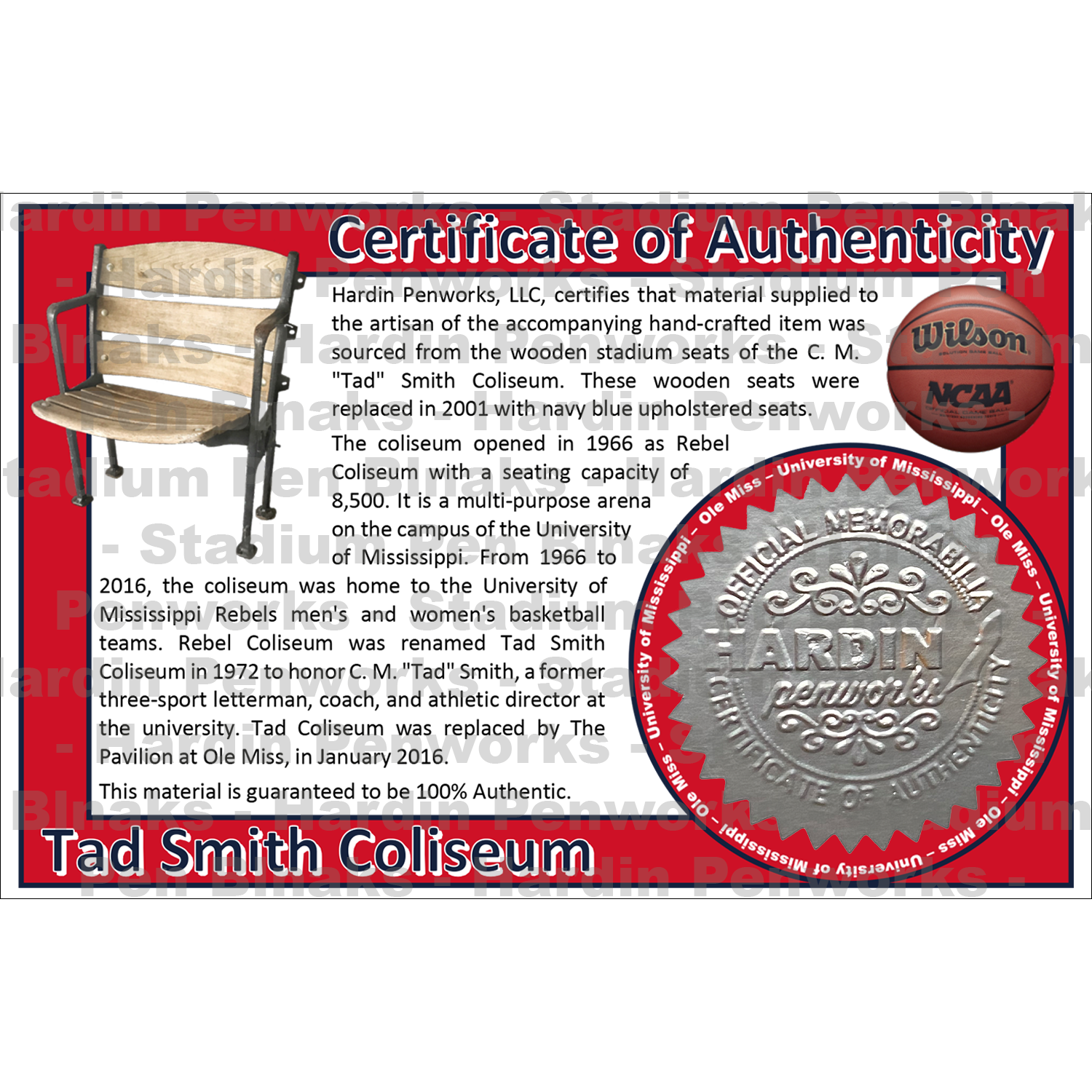 Blanks are from original wooden stadium seats of Tad Smith Coliseum.