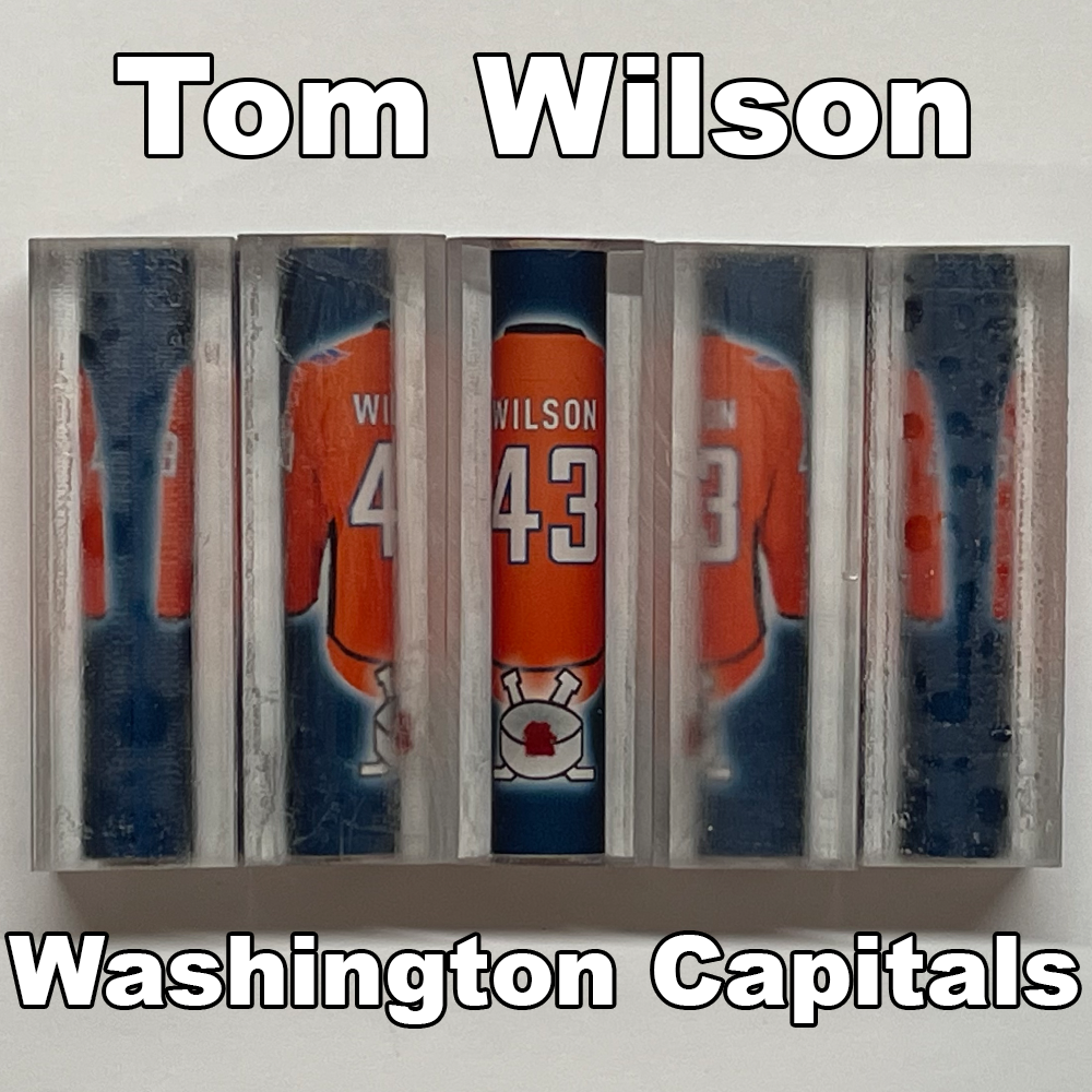 These blanks are from a game used jersey relic from Tom Wilson of the Washington Capitals.